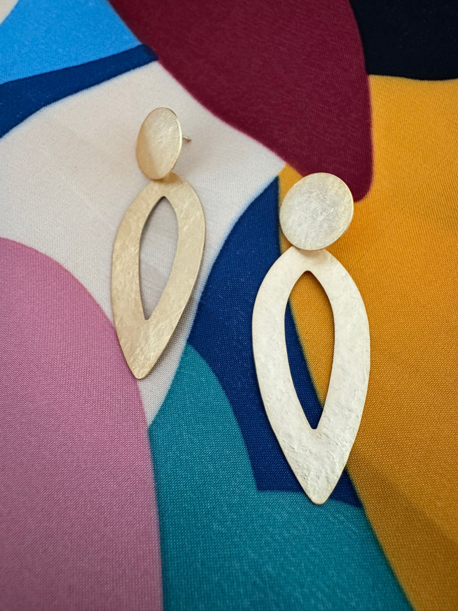 Deze oorbellen, gemaakt van verguld messing met een gehamerde textuur, voegen een vleugje elegantie toe aan elke outfit. Lichtgewicht en nikkelvrij, beperkte oplage beschikbaar.