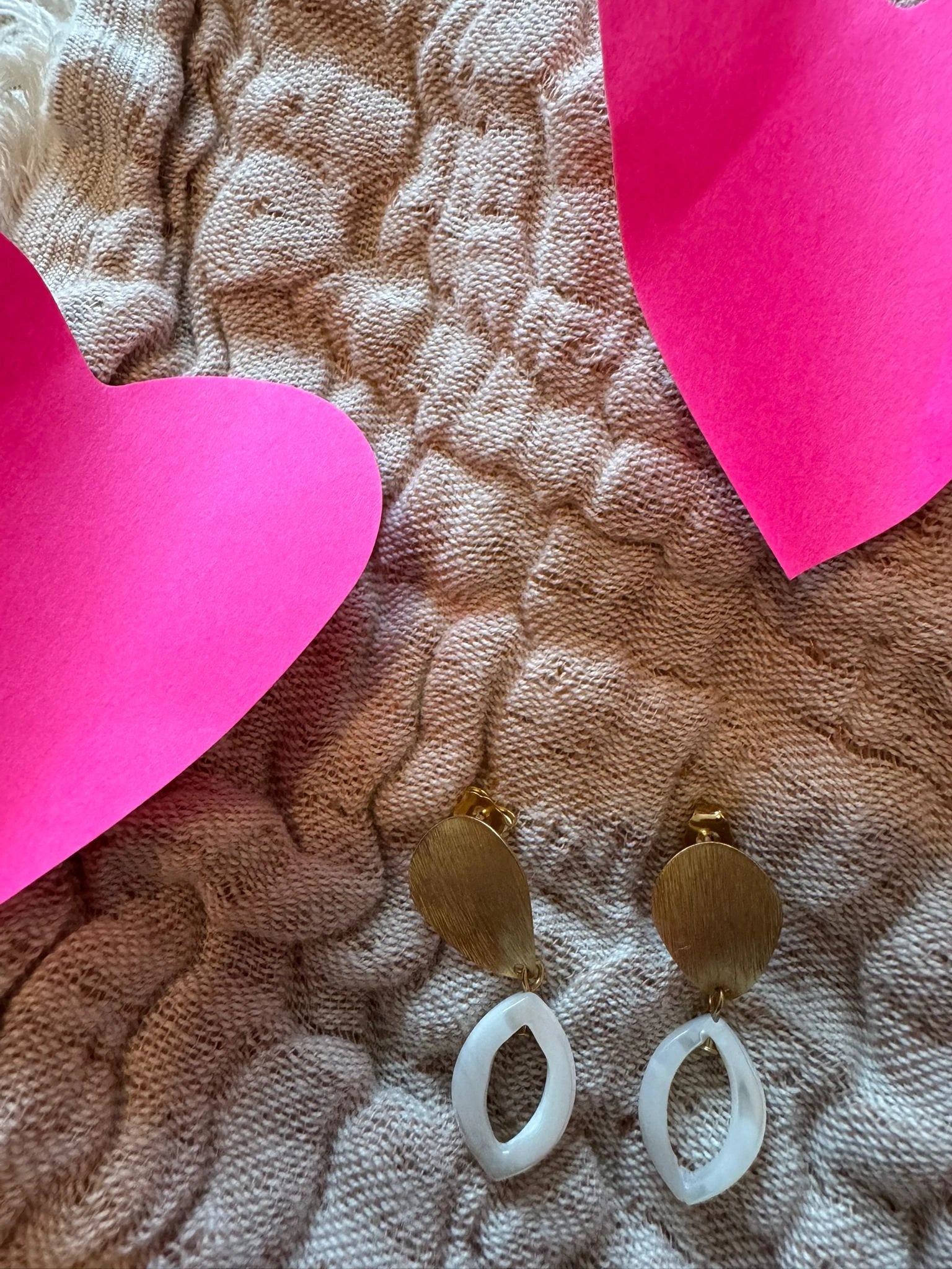 Deze delicate maar opvallende oorbellen zijn voorzien van lichtgevende witte schelpaccenten die sierlijk hangen aan verfijnd messing, verguld met 18-karaats witgoud. Ontworpen als een limited edition, handgemaakt exemplaar, zijn ze bovendien nikkelvrij voor optimaal comfort. Een verfijnd en veelzijdig accessoire dat elke look moeiteloos naar een hoger niveau tilt.