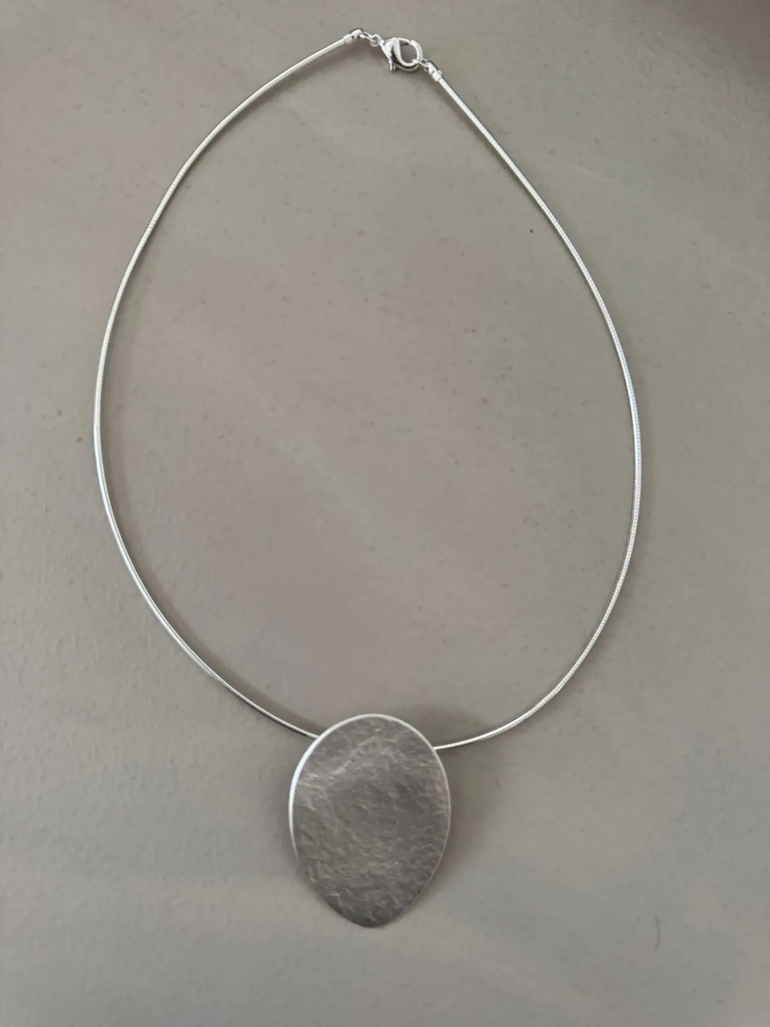This short silver necklace features a hammered oval pendant, crafted with care as part of our Belgian handmade jewellery collection — a Complimenti design that embodies the elegance of timeless jewellery.